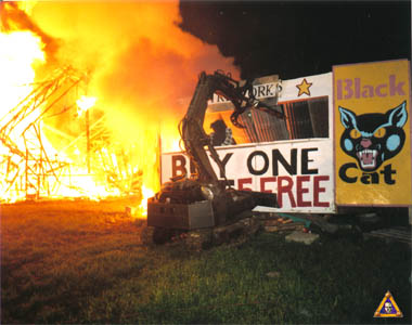 Tower burns while the Subjugator attacks the Black Cat stand...