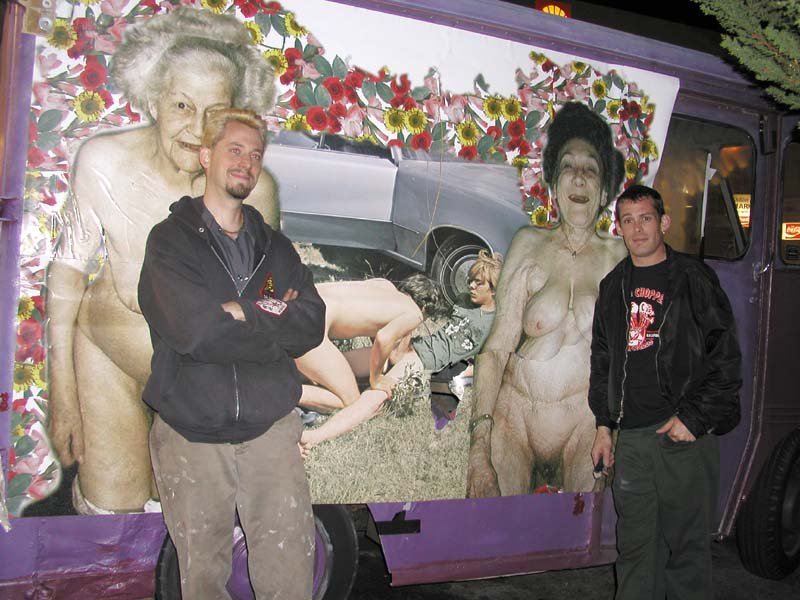 Ignatz and Bob beside ice cream old lady/hotrod porn truck